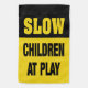 Big and bold with easy to read typography text. Yellow and black neighborhood children at play child safety sign. Get your neighbors to slow down when driving through on your street. Purchase several and display in several neighbors yards. Perfect for schools and playgrounds too!
