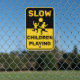 Slow Children Playing Yellow Black Metal Sign