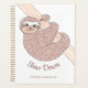 This cute planner is decorated with a rose gold glitter smiling sloth.