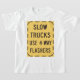 A slow trucks road sign that says use 4-way flashers. This design looks really effective on this Boys T-Shirt