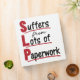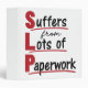 SLP design is funny gift for speech language pathologist or speech therapist. Perfect for men or women with speech pathology or therapy job. Design features funny acronym saying: "SLP Suffers from lots of paperwork." Perfect for speech therapy student