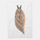 This awesome kitchen towel features a digitally created image of a big brown slug with a ginger belly sliming along.