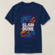 against a background of swirling, abstract colors in shades of blue, orange, and purple. The words "Slam Dunk" are boldly printed across the chest, creating a sense of intensity and energy. The overall design is modern, eye-catching, and perfect for basketball enthusiasts.