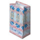 A small and fancy watercolor floral in pink and blue paper thank you gift bag, in blues and pink. The thank you text can be switched to any name, or text is removable. The soft baby blue background can be switched to any color to match your style.