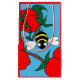 Sweet and vibrant, the Small Apple Gift Bag features the Busy Busy Bee buzzing playfully among bright red apples and lush green leaves on a cheerful blue background. The front showcases the bee with the apples, while the back highlights the apple design on its own — creating a fun two-sided look.