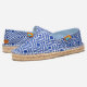 A simple geometric pattern of small squares and dots of blue color. Traditional African motif. Elegant footwear for anyone. Do not forget to change the color of the background and the color or pattern of the inner liner. If you CLICK the "More (14)" link of the CANVAS COLORS, you will get the opportunity to make a CANVAS OF ANY COLOR! Click "Apply" to use the chosen color. Have a sweet summer with a new pair of stylish espadrilles.