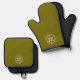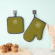 Small Business Promotional Custom Logo Olive Green Oven Mitt & Pot Holder Set