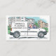 Small Business with Name on a Company Van. Colour illustration of a driver at the wheel of a white van. Illustration appears on both sides of the business card. Courier services or delivery man and van calling-card. Start-up business or new business stationery item.