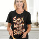 The phrase Small But Mighty is written in a bold, stylized font. Each letter is formed from stylized flames, creating a visually striking and energetic design.