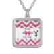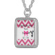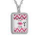 A small square silver necklace featuring "Cheerleader Pride From Bow To Toe" graphics with a pink bow, pink zig zag pattern and cheerleader.