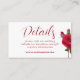 Wedding details / website enclosure small cards to direct guests to a wedding website for more information. Skinny printed font style in red on white. Reverse is solid red. Changing the size of this card may displace the wording so make sure it fits correctly.