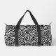 This small size duffel bag is shown in cute zebra print with black color accents.