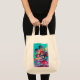 The printing came out very well, better than I had anticipated. The natural color fabric is sturdy with strong seams and comfortable handles. This tote fits easily over my shoulder. As it is filled, the bottom flattens out--very cool! I would buy this product again. This grocery tote holds a lot of groceries! The image quality was very good. The colors were a little darker than I had expected. The darkness may have been due to printing on a natural color fabric rather than on white. The cat design is attractively centered on the tote. The spirit of the design is very lively, just as it appears on the Zazzle website.