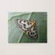 This awesome puzzle features a detailed macro photograph of a British moth species called the Small Magpie Moth. The moth is sitting on a broccoli leaf. The photograph was taken using macro photography to reveal the detailed spotted markings of this beautiful British moth.