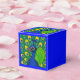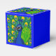Colorful peacock themed favor box in peacock theme for weddings and parties.