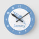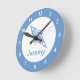 Space rocket wall clock with custom baby name Cute gift idea for little kids room. Blue and white nursery decoration with personalized name. For boys and girls. Small size wall clocks for newborn bedroom.