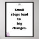 Embrace the power of progress with this inspiring motivational quote poster: "Small steps lead to big changes." Within these words lies a profound truth - that even the tiniest actions can pave the way for transformative results.