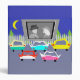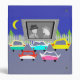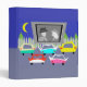 Pass the popcorn! This Small Town Drive-In Movie Binder will transport you to a simpler time, when gas was cheap, rock and roll was young, and the movie stars of Hollywood's Golden Age shined brighter than the night sky. The design features the rear view of five, virtually indestructible, retro cars in colors of red, pink, turquoise, jade and yellow. In front of the cars is a giant movie screen, showing a black and white movie, featuring two, star-crossed lovers in hats and trench coats. In the background, there is a grey, picket fence, a row of green, cedar trees, a royal blue sky and a yellow, crescent moon. We hope you've enjoyed our feature presentation!