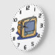 Great price for a very nice product. Arrived a day early - unheard of these days. The outside gold area has a little more orange tone to it than shown in the picture. Great packing so product can't get damaged. I used the same packing to forward the clock to my brother and sister-on-law for the 50th wedding anniversary. Printing was just as expected - lovely!