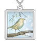 Small Yellow Bird Perched on a Branch Looking up Silver Plated Necklace
