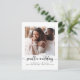 If unforeseen circumstances require you to downsize and reduce attendance at your wedding, you can let family and friends know that your love and wedding will go on but now on a smaller scale with this smaller downsized wedding announcement postcard. The front features your favorite photograph in a cut out square frame and "Smaller Wedding" written in a trendy script with swashes, and underneath you can personalize your first names and the wedding downsize announcement. On the reverse side, you can personalize your message in more detail and add any virtual wedding events and future celebrations.