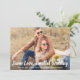 If circumstances require you to downsize your wedding to a micro wedding, you can inform your original extended guest list with this downsized wedding announcement. The front features your favorite engagement photograph and "Same Love, Smaller Wedding" written in large contemporary white script across the bottom of your photo, and underneath you can personalize your names and the wedding downsize announcement. On the reverse side, you can personalize your message in more detail and add any livestreaming and wedding website information, all in white typography against a classic blue background.
