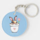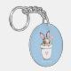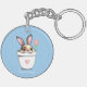 Smart Bunny with Flower & Heart on Light Blue Keychain