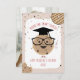 "One smart cookie" Valentine's theme featuring illustration of a cookie wearing a graduation cap and glasses with a glass of milk surrounded by confetti. Personalize the photo on back.