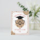Illustration of a chocolate chip cookie with face, arms and legs wearing glasses and a graduation cap holding a bottle of milk with straw surrounded by cookies and confetti. Text says, "You're one smart cookie" Opposite side features your custom photo.