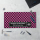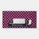 A smart fuchsia or hot-pink and black look for your workplace, using the classic checkerboard design as a background. The chequered flag style squares capture the retro trend and add a masculine look that can still combine with bright colors to include your corporate palette or small business brand. It's simple to upload your logo to appear beside the customizable text, which will allow you to personalize for an individual or a company boss.