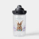 This sassy brown bunny is wearing stylish blue and white glasses with a matching bow tie. The rabbit is surrounded, on both sides by beautiful purple flowers. At the top there is room for a name. This design is on the front and back.