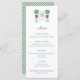 A menu design in festive colors (red and green) and featuring my own original watercolor illustrations (the boxwood topiary with bow). The pattern on the reverse was created digitally by me. The monogram letter in the crest could be the first letter of the family name or the first name of the honoree (you could also access the design tool and delete this entirely to just leave the boxwood topiary with bow). You can also change the contrast color on the reverse (currently a sap green) by changing the background color on the reverse side.