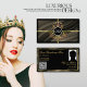 The design features a noble crown with shimmering, ornate golden decorative elements on a wavy, patterned, curved brown and plain black background.