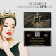 The design features a noble crown with shimmering, ornate golden decorative elements on a wavy, patterned, curved brown and plain black background.