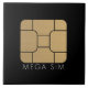 Now you can have a Sim card to wear on your body thanks to this new mega format. Because nano format is for dwarves. The design is beautiful brushed gold on a black background. SIM stand for subscriber identification module and whenever you're changing mobile plans for your cell phone you probably get a new SIM card. Simply stick the SIM in your smart phone, for instance an iPhone from Apple, and you are good to go. The contact points of a SIM card and the symbol for SIM are ubiquitous. A good idea to make it more so with this vector drawing. The texture is brushed gold. We all know the standard, micro and nano format of a SIM, so why not a mega format for humans. Humans are smart too!
