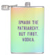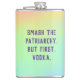 Well made flask, a little better than I had expected. Flask came in clear plastic box which gave it a nice presentation when I took it out of the zazzle packaging. Image is not printed on flask but on sticker. Don't know how this will hold up I haven't used it yet. This would make a Great gift! I plan to purchase more for friends! Cheers. I thought a little brighter than computer. Very crisp, writing wasn't