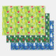 Green, yellow and white 🎄Christmas 🎾tennis wrapping paper sheets. Cute tennis rackets with Santa's hat and Smashing Christmas wish on fresh green background.