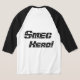 I bought the Men's Basic 3/4 Sleeve Raglan T-Shirt, White/Navy. It arrived on time for a gift and is of a great quality and fits perfectly! So cute! Zazzle has done it again! The printing was clear and filled in solidly.