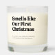 Light up the spirit of 'Our First Christmas' with our scented candle, a perfect keepsake for newlyweds, just married couples, or anyone celebrating a memorable housewarming. This beautifully designed candle features charming typography that symbolizes the joy of the holiday season and the beginning of a new chapter together. Let the aromatic embrace of this candle fill your home with warmth and love, making it an ideal addition to your holiday decor.