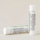 This awesome lip balm features a cute cartoon of a green brussel sprout with big eyes and a smile. It has dark green leaves around the outside and a paler green inside.