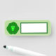 This awesome dry erase name tag features a cute cartoon of a green brussel sprout with big eyes and a smile. It has dark green leaves around the outside and a paler green inside.