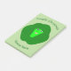 This awesome pad of post it notes features a cute cartoon of a green brussel sprout with big eyes and a smile. It has dark green leaves around the outside and a paler green inside.