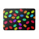 This rug is just as pictured! Vibrant Red and very soft material, nice to step in out of the tub! Matches my set of accessories and shower curtain! A must have to add some whimsy to your bathroom! Very nice, vibrant and clear print! Beautiful!