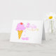 Smile Ice Cream greeting card. Customizable card has a cute melting pink ice cream cone with a cherry on top and the word smile in pink letters.