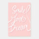 Card with hand drawn typography design element for greeting cards posters and print. Smile love dream with little hearts clouds and smile on red background eps 10 | Bigstock® - All Rights Reserved.