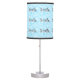 The lamp looks exactly like the picture, bright and colorful. The lamp shade is plastic not what I expected, however I love it! The printing is clear and the name can easily be read.