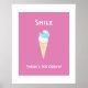 Smile There's Ice Cream! Motivating and inspiring quote with a pink background, and a yummy ice cream. Ice cream, juicy, colorful watercolor illustrations, and sweet decorations.