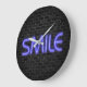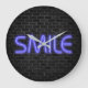 SMILE text in neon lights on brick Large Clock