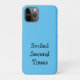 The Smiled Several Times text on a blue phone case. Sizes for multiple phones. Tough and Barely There.