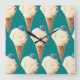 Smiling Bichon Ice Cream Pattern Teal Art Square Wall Clock